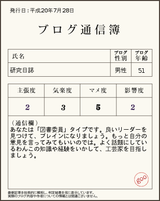 数日前に書きました、「ブログ通信簿」の話を。