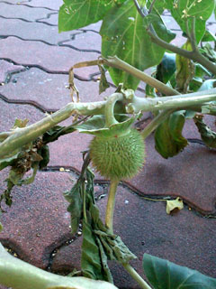 後日、再び足を運んだら軟らかいオクラみたいなものがなってたんですが、あれは蕾だったんですねー。