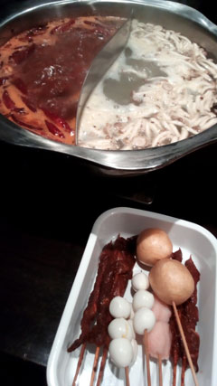 バイキング形式で、好きな具材を取りに行っては鍋に放り込む感じです。
