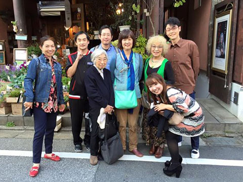 劇場前にて、昴演劇学校時代の恩師らと記念の一枚。