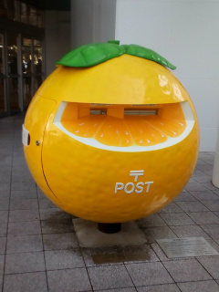 宮崎駅の「日向夏ポスト」。ここから鹿児島へ向かいます。