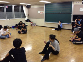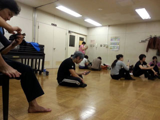 稽古場にて、みんなしてスマートフォンをいじってますが、