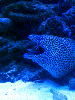 いつもなら塩ビパイプの奥に引きこもっているウツボが