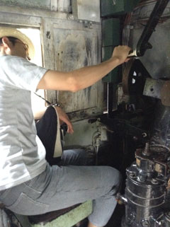 正面に窓がないから、横窓から身を乗り出すしかないのね。