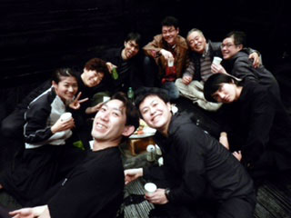 なんと、全ステージを終えた、舞台の上で打ち上げをしました!