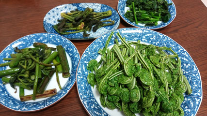 こごみ とウドと たらの芽とアブラナ。