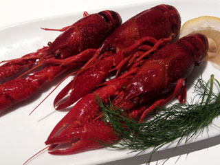 ディルと塩で茹でた、ハサミが大きい種類のザリガニをひたすら食べるとゆーイベント。