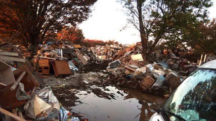 災害ごみの仮置き場。