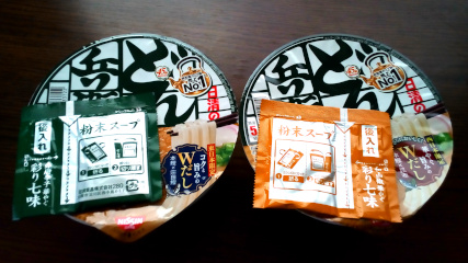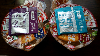 粉末スープの包装の色が違うんですなー。