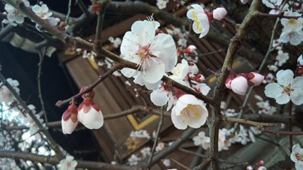 某天神様の梅。ちょっと終わりかけ。