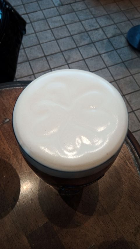 てか、すごっ! ギネスの泡に四つ葉のクローバー!?